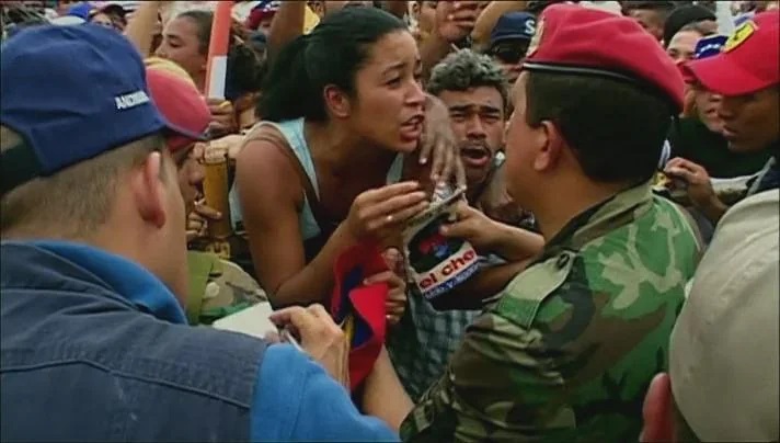 At the end of the shoot, up to 200 hours of footage were made available to the editor! The directors, in the wake of this project originally intended to paint a portrait of an unusual politician, found themselves witnessing the unfolding of a revolution. Chávez appears not as a mere eccentric character, but as a leader who channels both the demands of workers and poor farmers and the wrath of the oligarchy. Chávez is the center of attention, but the rising tide of class struggle courses through the entire film. The initial framing, too narrow, cannot help but burst open.